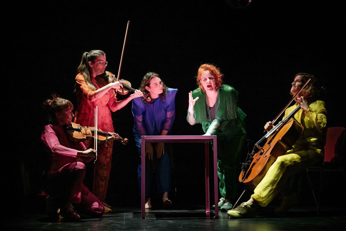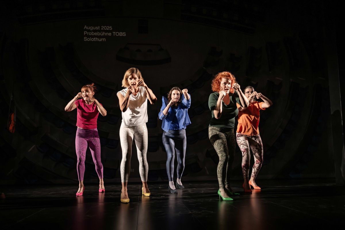 Zu diesem Empfindungswandel führen die fünf Frauen, die auftreten: zwei mit der Rollenbezeichnung Performance, drei mit den Bezeichnungen Violine, Viola und Violoncello. Sie tragen einschlägige Lieder aus der Frauenbewegung vor, leider alle auf englisch und englisch übertitelt. Inklusion aber sieht anders aus (um die Wendung eines Kollegen von der BZ zu zitieren). Und die Reden der Politikerinnen, die auf der Bühne zitiert werden, sind auch nicht gerade in einfacher Sprache gehalten. Da klafft bei TOBS! noch ein Zwiespalt zwischen Theorie und Praxis.