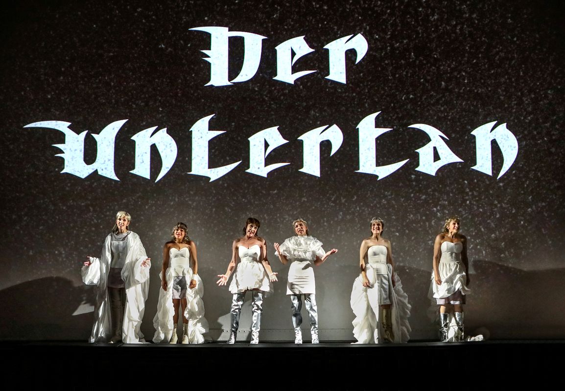 Alexander Eisenach: Gerade weil Heinrich Mann hier das Porträt eines auf patriarchalen Strukturen basierenden Autoritarismus entwirft, indem jegliche Herrschaft von den Männern ausgeht, wollte ich mit der Besetzung bewusst auf das fehlende weibliche Element darin anspielen. Ausserdem will ich nicht überkommene Verhaltensmuster reproduzieren, die zeigen, dass Männer grundsätzlich das Sagen haben und die Frauen von ihnen dominiert werden. Wir haben dieses Machtgefüge umgedreht und all die darauf abzielenden Texte den Frauen gegeben, um sie auch anders hörbar zu machen. Weil es natürlich etwas ganz anderes ist, einen toxisch-maskulinen Inhalt von einer Frau zu hören, denn sie wird als Sprecherin zugleich zur Adressatin des Textes, zu derjenigen, die mit diesen Worten ausgestossen und abgestossen werden soll. Dadurch wird uns hoffentlich wieder bewusst, was sich in den letzten hundert Jahren gesellschaftlich verändert hat, und was bestimmte Kräfte gerade wieder versuchen, rückgängig zu machen.