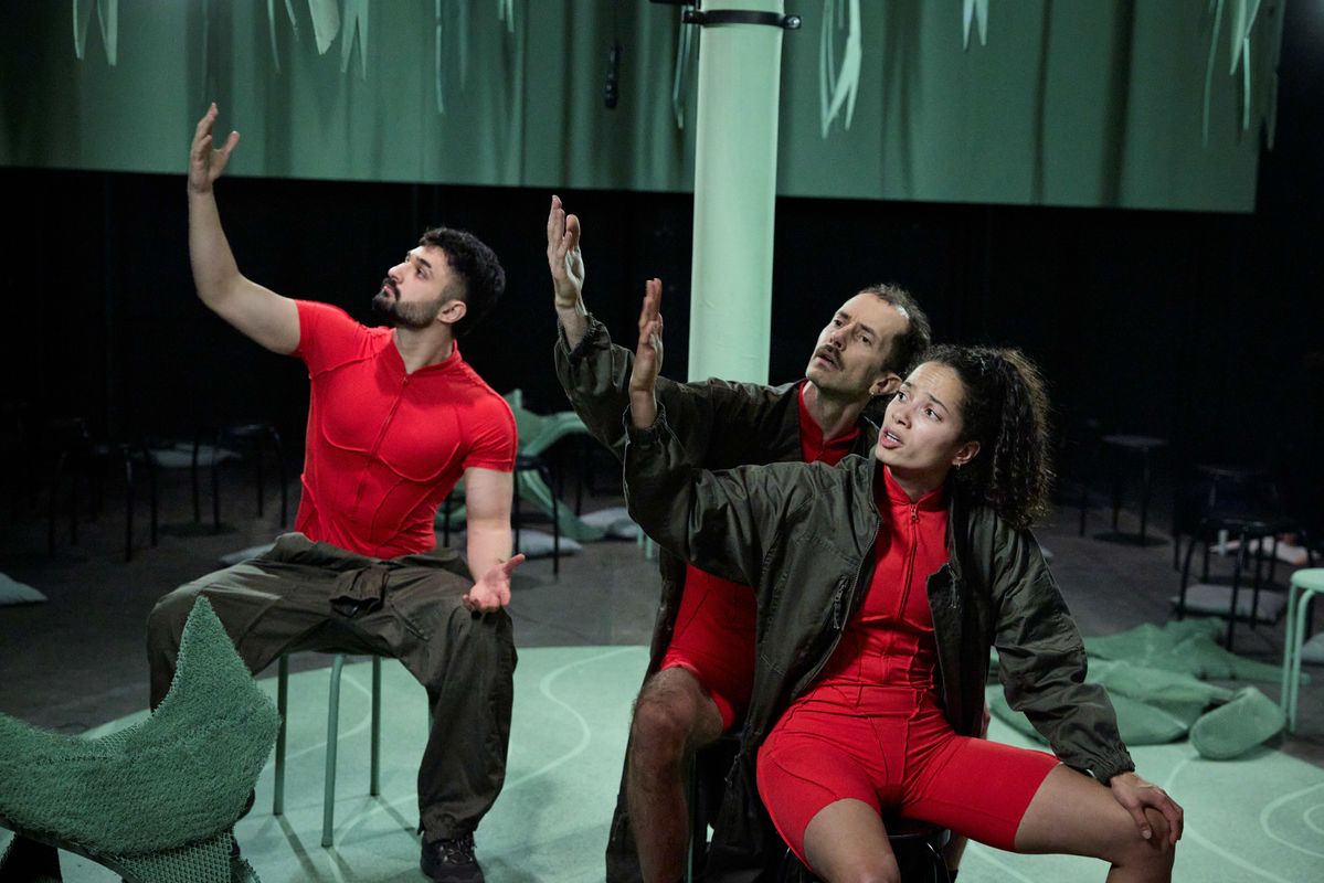 Durch ihre assoziative Inkonsistenz gleicht die Vorstellung eher einer Trump-Rede mit einer Wolke von Gebrabbel als einem Stück. Und wie der amerikanische Präsident, der am Tag der Uraufführung in Davos auftritt, bringt auch sie Werte und Haltungen. Nur eben die, welche heute noch in Köniz verlangt sind: Antikolonialismus, Antikapitalismus, Antimachismus. Damit können Schauspieler und Regie machen, was sie wollen und können, und das tun Lou Haltinner, Claudius Körber und Ali Kandas jetzt auch unter der Leitung von Miriam Ibrahim mit zeitgeistiger Gelenkigkeit.