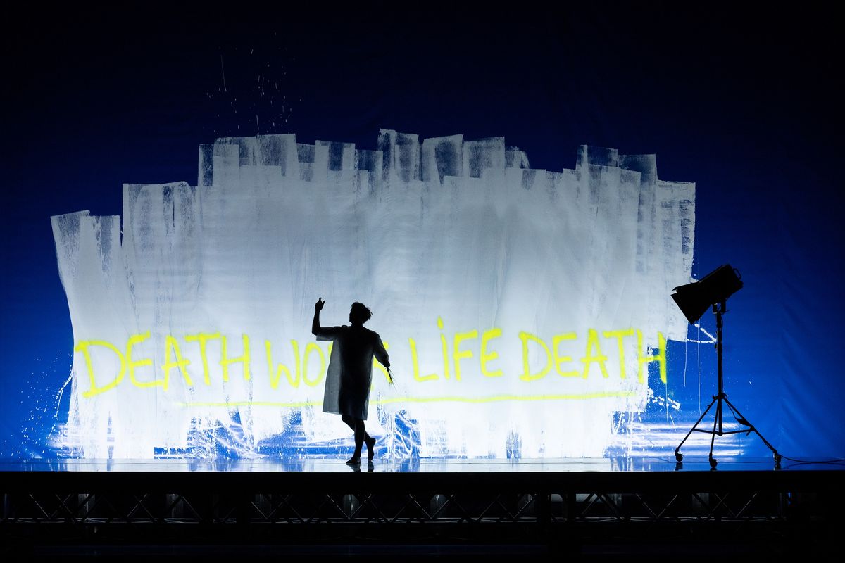 Die Aufführung ist von Anfang an packend. Das Bühnenbild von Aleksandra Pavlović – eine raffinierte Staffelung von Atmosphären, Farben und Zeichen, die in die Tiefe führen – weckt traumartige Aufnahmebereitschaft. In sie hinein prasseln die Meteore von Rainald Goetz' Ausführungen, Dialogen, Fragen und Feststellungen. Es geht um das Sich-Entziehen und um das Sich-Behaupten. Es geht um den Tod, den man sucht, um den Tod, der kommt, und um den Tod, den man herbeiführt. Das Ganze formuliert mit der Ambivalenz des Worts, welches einerseits das Leben feiert, andererseits das Lebendige versteinert.