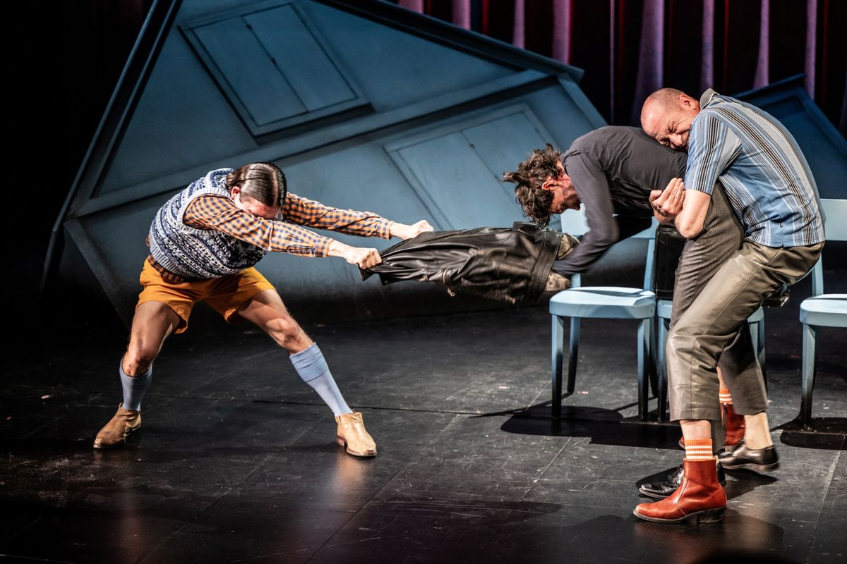 Die drei Geschwister Flick wirken neben ihm auf unterschiedliche Weise bedrohlich: Hanno (dargestellt von Fritz Fenne) begrapscht den Körper des jungen Arztes mit einer Mischung von Aggressivität und Verlangen. Emil (Gabriel Noah Maurer) erscheint als zerknautschtes und Hedy (Lina Hoppe) als verdrehtes Neurosenbündel. Die schräge Situation wird verstärkt, als der Musiker Martin von Allmen hinter seinem Schlagwerk hervortritt und in der Rolle des stummen, verwirrten Vaters über die Bühne geistert.