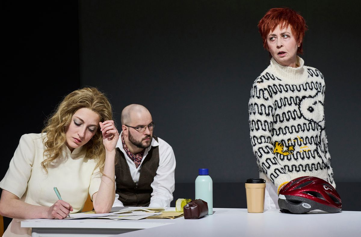 Auf der Bühne arbeitet Regisseur Christoph Diem die menschlichen Aspekte heraus. Die Darsteller spielen aus der Mitte der Figur. Der Ansatz gibt ihnen Profil und Glaubwürdigkeit. Florian Barth lockert die Trockenheit der Materie durch Bewegungen auf der Leinwand, Veränderungen von Licht und Ton und Umbauten auf der Bühne so weit auf, dass die Handlung selbst da bewegt erscheint, wo sie stagniert. Ein handwerklich überzeugender Abend.